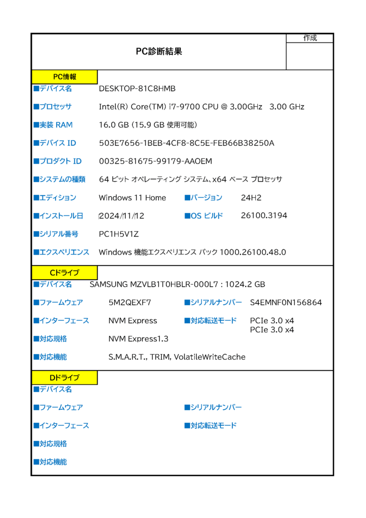 PC状態チェック(詳細)8000円